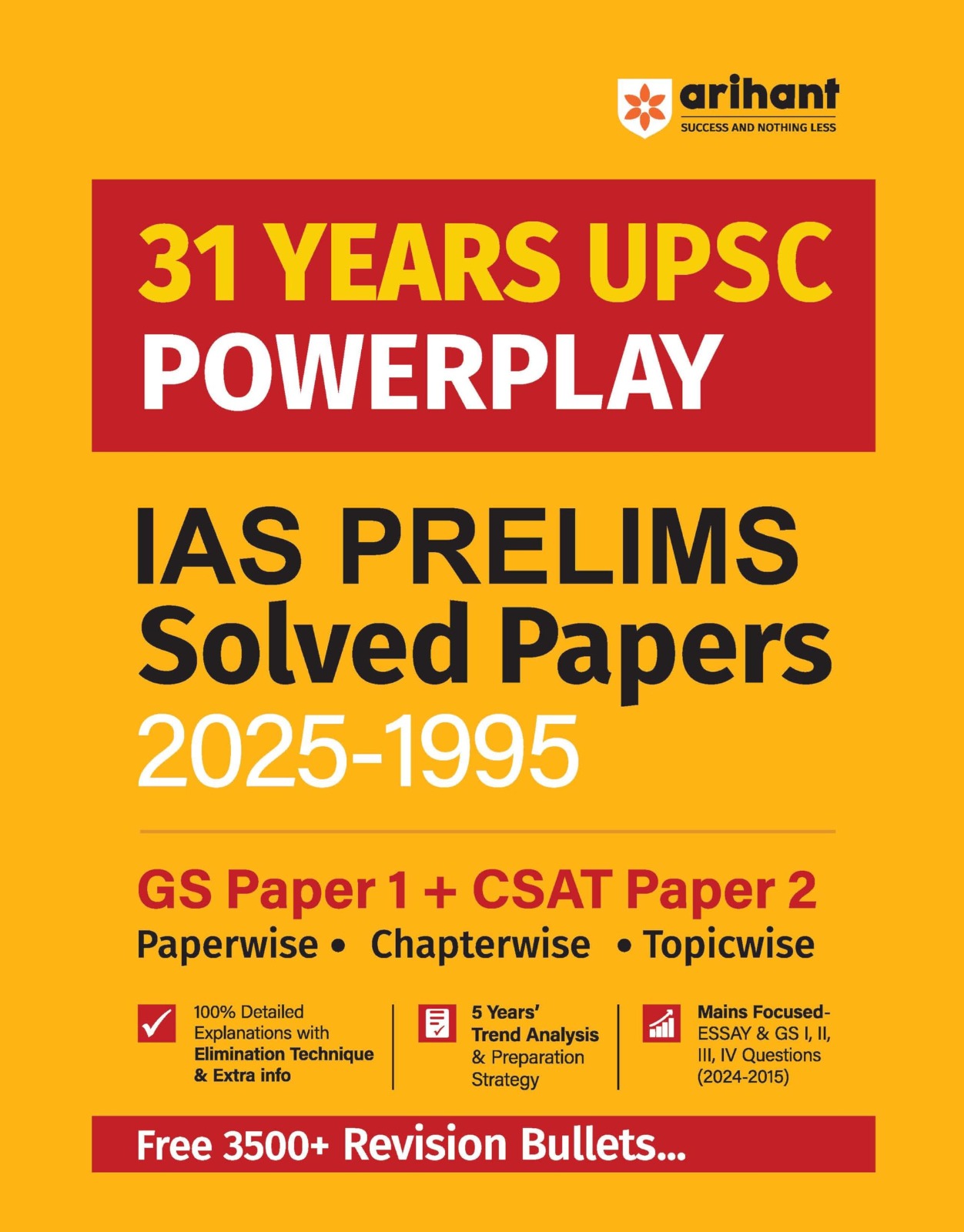 Arihant 31 Years UPSC Powerplay IAS Prelims Solved Papers (2025–1995) | GS Paper 1 and CSAT Paper 2 | Chapterwise, Topicwise with 3500+ Revision … and Detailed Explanations | For Exam 2025